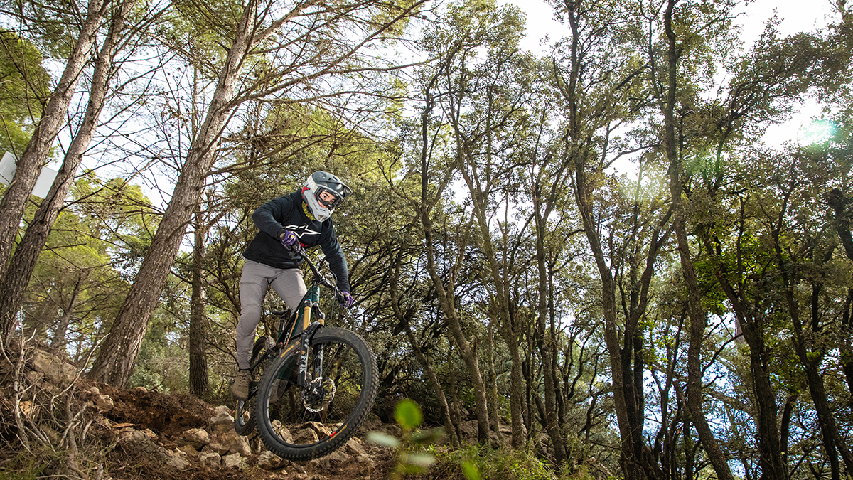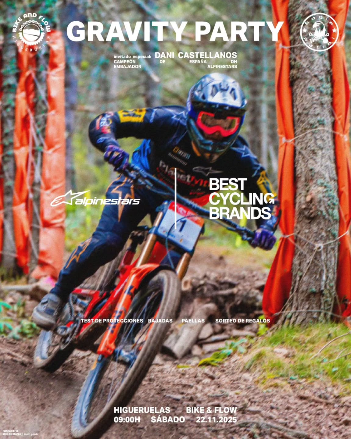 En cada fiesta no pueden faltar los invitados especiales, y en esta ocasión tuvimos la presencia de Dani Castellanos, campeón de España de descenso y embajador de Alpinestars, cuya experiencia y estilo marcaron el ritmo de una jornada inolvidable. Contando en el grupo con alguien con tanto flow, era el mejor momento para estrenar oficialmente la senda de Caballerizas, un recorrido recuperado a partir del antiguo camino histórico por el que los carros se trasladaban entre Valencia y Aragón.
