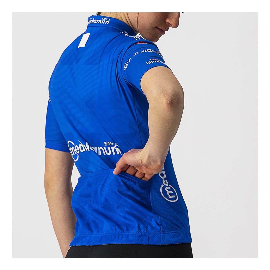 Técnica Sitip reciclado para los tejidos personalizados de Castelli con Velo Light en la parte delantera y trasera y tejido de malla 3D en las mangas Cremallera YKK® Vislon® con tirador de cremallera Castelli scorpion Cintura de malla de silicona 3 bolsillos traseros Ajuste neutro con tejidos altamente elásticos que se adaptan a la mayoría de los tipos de cuerpo Rango de temperatura: 18°32°C / 65°90°F Tallas: XSXL Peso: 100 g (L)