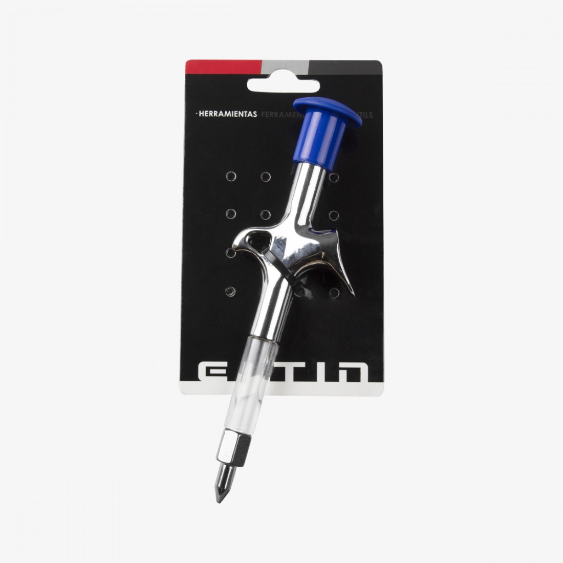 Material Tubo interior de cobre Superficie de cromo Mango ergonómico Boquilla de 0.9mm Características: Peso: 70 g. Medida: 17.5 cm. Caja: 100 uds.