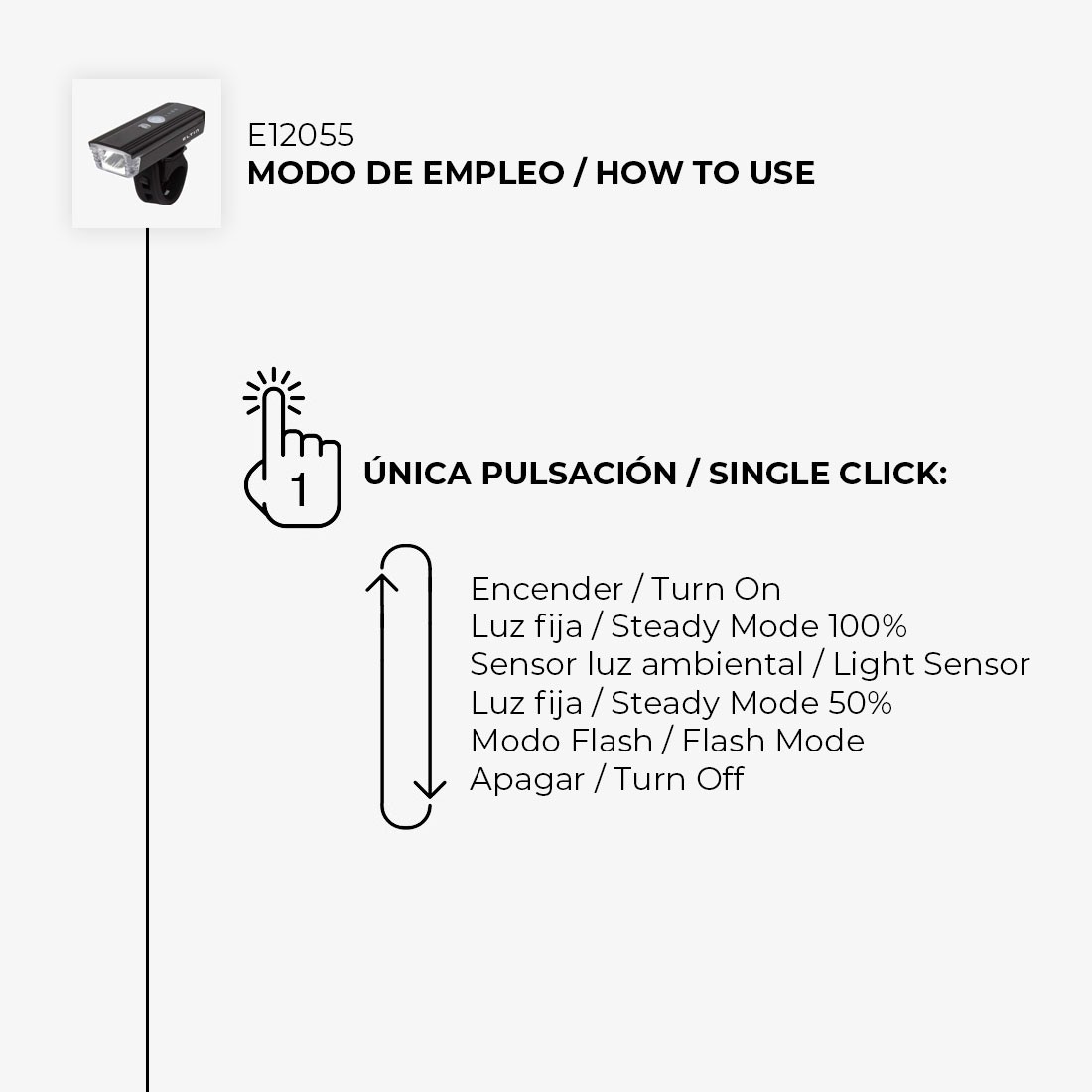 · 2 clics: Modo sensor -luz roja tenue bajo pulsador- (variable)