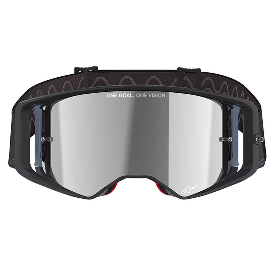 - Super-Lock®: El Alpinestars Super-Lock® es un innovador sistema de bloqueo de lentes que mantiene la lente inyectada ABS Vision segura y sellada herméticamente en su posición. Este sistema permite al piloto cambiar rápidamente la lente por otra o por un sistema Roll-Off con un simple deslizamiento del pulgar.